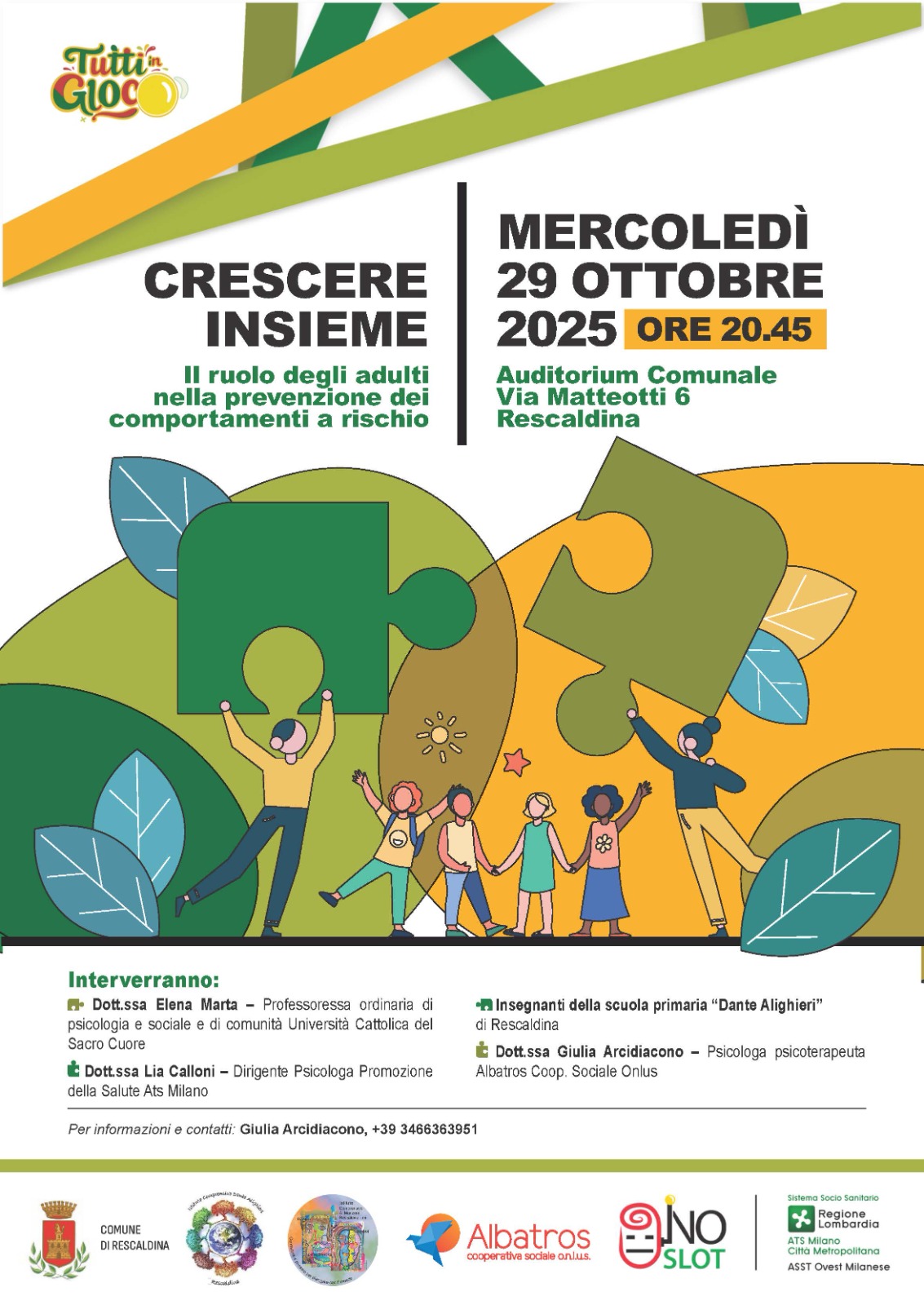 Il Comune di Rescaldina Assessorato ai Servizi Sociali e Assessorato all'Istruzione in collaborazione con la Cooperativa Albatros vi invitano a partecipare all'incontro formativo