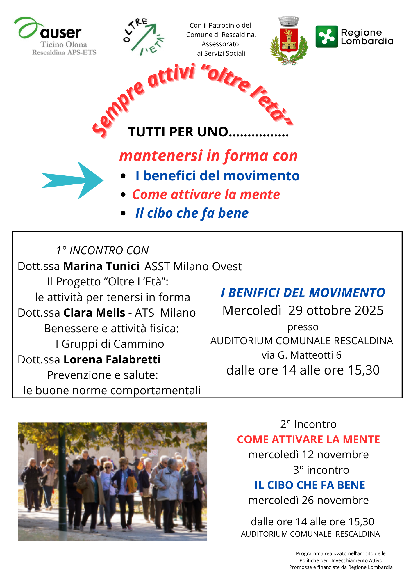 L'Auser Ticino Olona Rescaldina con il Patrocinio del Comune di Rescaldina Assessorato ai Servizi Sociali